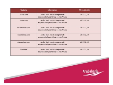 Awemainta.com Aruba Bank nos ta comprometi Afl. 172,50