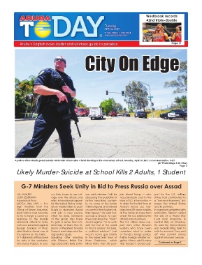 A police office stands guard outside North Park School after a fatal shooting at the elementary school, Monday, April 10, 2017, in San Bernardino, Calif.