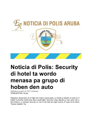 Diasabra, Supervisor di un high rise hotel a yama polis y a meldt cu tabatin un auto cu 4