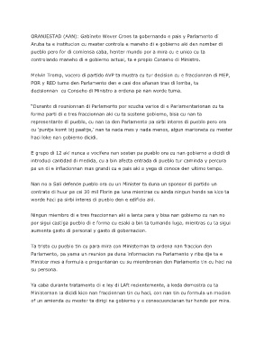 ORANJESTAD (AAN): Gabinete Wever Croes ta gobernando e pais y Parlamento di