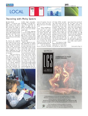 food critics when traveling. dinners for parents with lit- 4. Look for opportuni- especially on travel days,