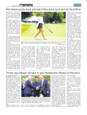 back, but began crying strong wind, cool tempera- hole. She also hit her driver big hitter, hit 3-wood just "I was wearing my sunglass-