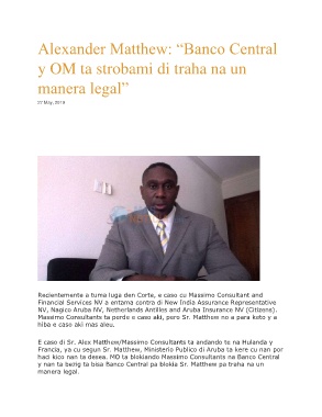 y nan ta bezig ta bisa Banco Central pa blokia Sr. Matthew pa traha na un