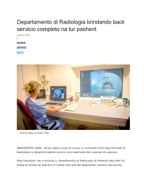 Riba Diaranzon nan a anuncia cu departamento di Radiologia ta trahando back den full