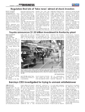 further cementing our pres- turing, Kentucky plant in Georgetown, Ky. Toyota said Monday, April 10, 2017, it is investing $1.3 said the Camry’s new un-