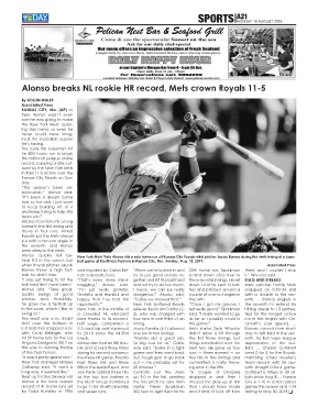 Alonso quickly fell be- New York Mets’ Pete Alonso hits a solo home run off Kansas City Royals relief pitcher Jacob Barnes during the ninth inning of a base-