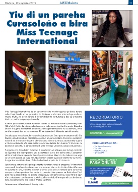anochi el a gana e certamen aki di Miss Teenage International na Guatemala, unda
