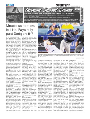 games behind Oakland in the NL wild-card race. Tampa Bay Rays' Austin Meadows hits a solo home run off Los Angeles Dodgers relief pitcher Josh