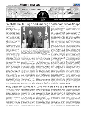 On Sunday, chief negotia- for the U.S. military deploy- does a lot for our alliance troops from South Korea. U.S. and North Korean of-