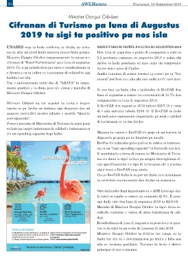 UNABES mas ta keda confirma cu Aruba su turis- RESULTADO DI HOTEL PA LUNA DI AUGUSTUS 2019
