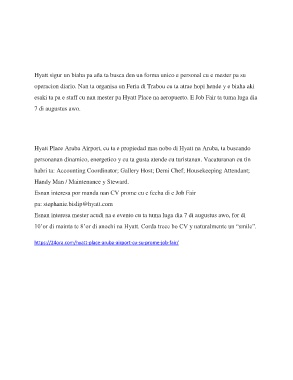 esaki ta pa e staff cu nan mester pa Hyatt Place na aeropuerto. E Job Fair ta tuma luga dia