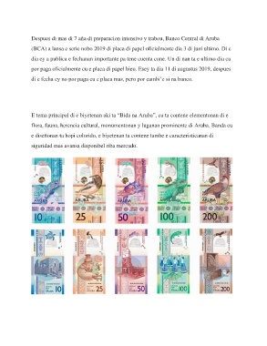 E tema principal di e biyetenan aki ta “Bida na Aruba”, cu ta contene elementonan di e