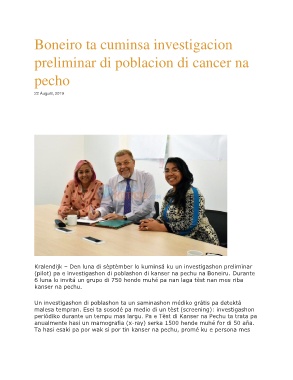 (pilot) pa e investigashon di poblashon di kanser na pechu na Boneiru. Durante