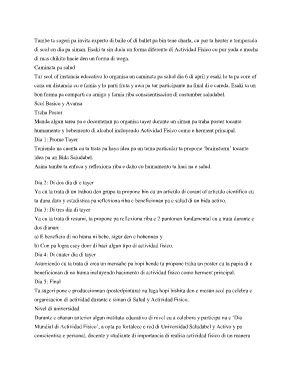 humamento y bebemento di alcohol incluyendo Actividad Fisico como e herment principal.