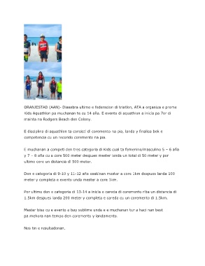 Kids Aquathlon pa muchanan te cu 14 aña. E evento di aquathlon a inicia pa 7or di