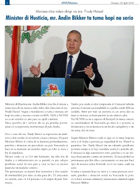 Minister di Husticia, mr. Andin Bikker ta tuma hopi na serio