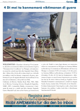 WILLEMSTAD – Djasabra 4 di mei pa 9’or di main- e echo aki. Esaki ta tuma lugá durante un seremonia