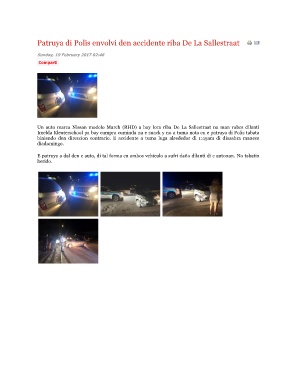 E patruya a dal den e auto, di tal forma cu ambos vehiculo a sufri daƱo dilanti di e autonan. No tabatin