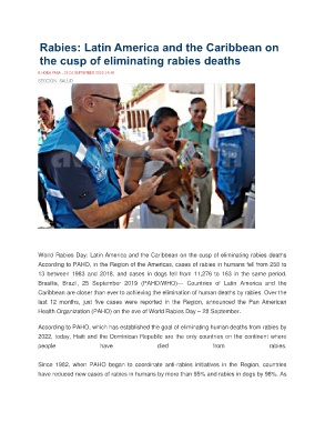 Health Organization (PAHO) on the eve of World Rabies Day – 28 September.