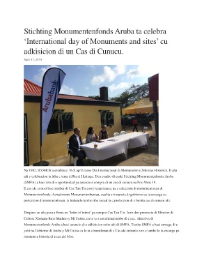 aki e celebracion ta hiba e tema di Rural Heritage. Den cuadro di esaki Stichting Monumentenfonds Aruba