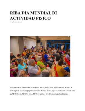 En conexion cu dia mundial di actividad fisico, Aruba Bank a yuda sostene un serie di