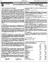 pressures. We remain committed to our communities, serving our clients effectively and consolidated financial statements and the auditor’s report thereon. The audited