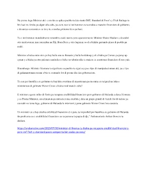 Na prome luga Minister aki e ora tin cu splica pueblo ta kico tanto IMF, Standard & Poor’s y Fitch Ratings ta