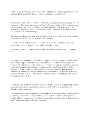 mester sa nan papel. Sigui corta den enseñansa numa y e cobransa Aruba lo ricibi