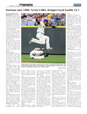 Kershaw wins 150th, Turner 5 RBIs, Dodgers beat Seattle 12-1