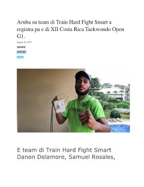 Aruba su team di Train Hard Fight Smart a registra pa e di XII Costa Rica Taekwondo Open G1. August 28, 2019 SHARE Facebook Twitter E team di Train Hard Fight Smart Danon Delamore, Samuel Rosales,