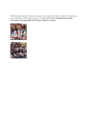 Stichting Sportsubsidie Aruba ta contento di por aporta y brinda e ayudo n’e Federacion di Landamento AZB p’asina nan por a competi den UANA Panamerican Artistic Swimming Championship na Windsor, Ontario Canada