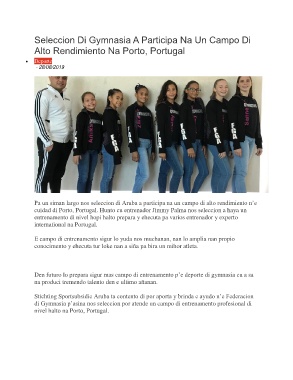 Seleccion Di Gymnasia A Participa Na Un Campo Di
