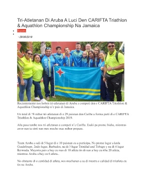 Recientemente nos hoben tri-atletanan di Aruba a competi den e CARIFTA Triathlon &