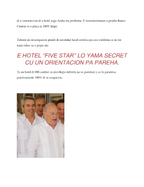 di e construccion di e hotel yega Aruba sin problema. E inversionistanan a prueba Banco