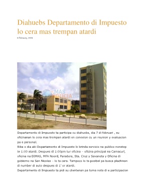 Riba e dia aki Departamento di Impuesto lo brinda servicio na publico nonstop