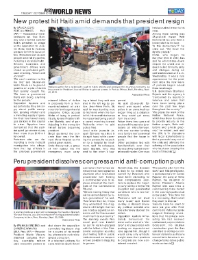 Congress, in Lima, Peru, Monday, Sept. 30, 2019. much harm to our country." Opposition leaders imme- tions that his private con-