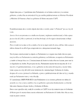 di Reino pero lo mester duna cuenta solamente na Parlamento di Aruba loke riba su mes,