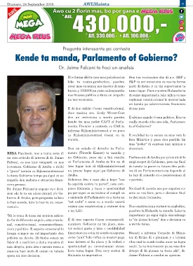Falconi, cu nos kier comparti cu nos cu Parlamento di Aruba ta bin na di exigi respet di Gobierno, pero na final