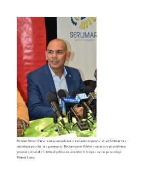 personal y di salud e lo retira di politica na december. E lo laga e cartera pa su colega