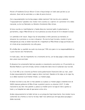 Aruba orguyosamente mester paga su debe nacional. Pasobra si tin algo cu ta sigur ta,