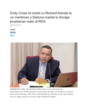 ORANJESTAD (AAN): Parlamentario Endy Croes no por compronde con