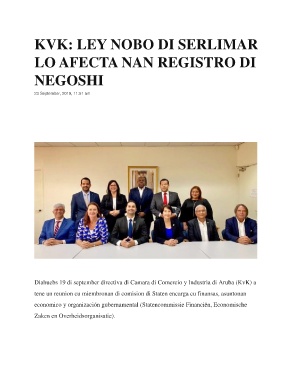 Diahuebs 19 di september directiva di Camara di Comercio y Industria di Aruba (KvK) a