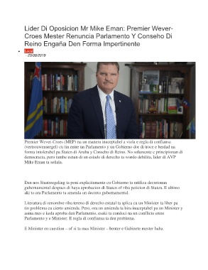 Lider Di Oposicion Mr Mike Eman: Premier Wever-