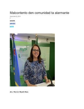 Malcontento den comunidad ta alarmante September 23, 2019 0 SHARE Facebook Twitter drs. Mervin Wyatt-Ras: