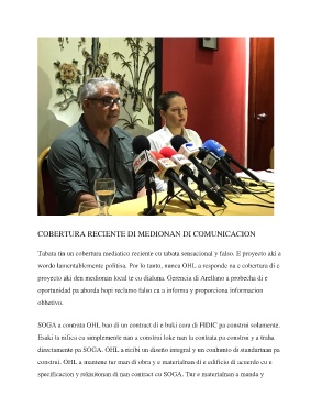 Tabata tin un cobertura mediatico reciente cu tabata sensacional y falso. E proyecto aki a