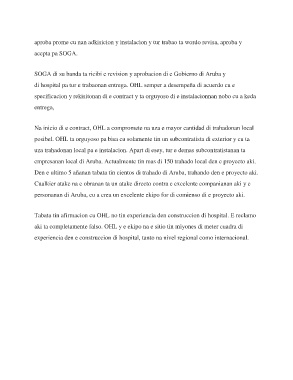 Tabata tin afirmacion cu OHL no tin experiencia den construccion di hospital. E reclamo