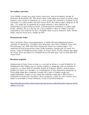 separa y awe Aruba ta stobando cu e deal corupto aki caminda e Hospital no ta