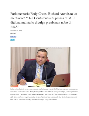 Parlamentario Endy Croes no por compronde con Parlamentarionan di AVP haciendo malo por keda cana den