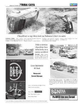 skerpi di Sabana Liber diasabra atardi er y cay den e rooi. Unidadnan di roadservice y polis ta- for di den rooi.