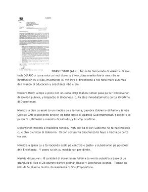 informacion cu a leak, mustrando cu Ministro di Enseñanza a rek faha mara aun mas